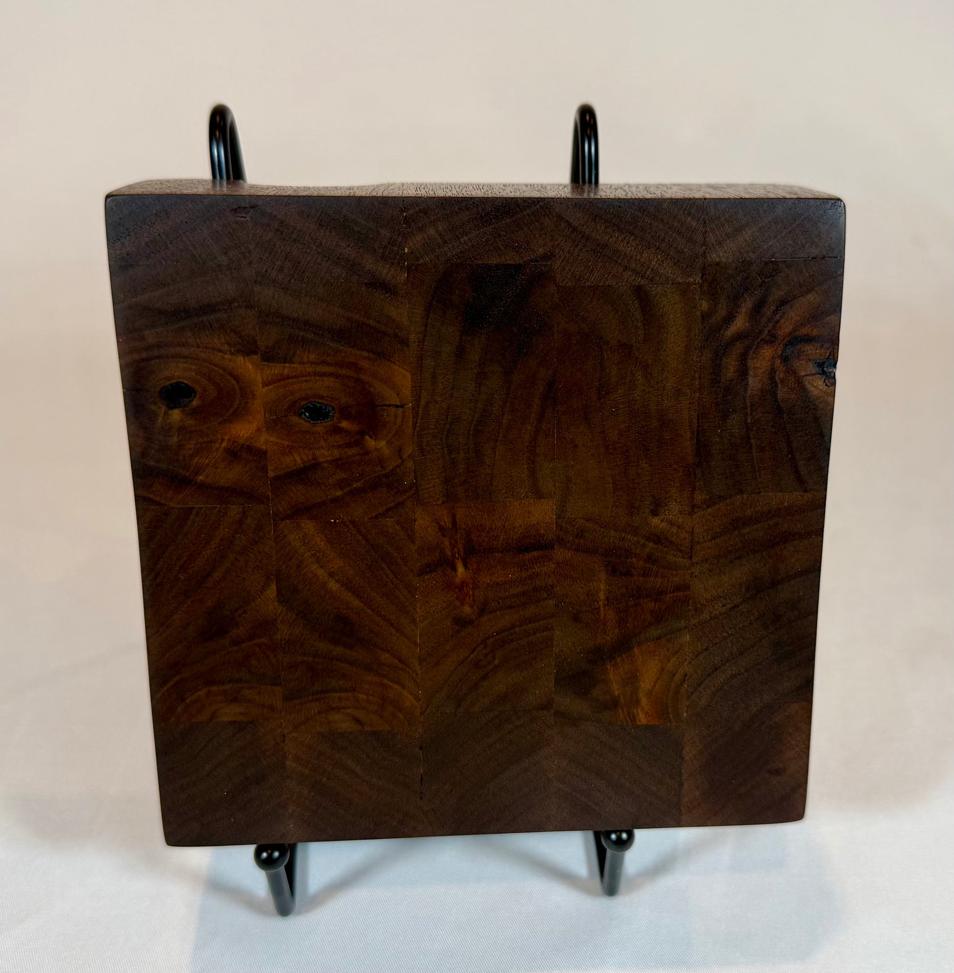 This is Butcher Block Walnut made out of multiple strips of walnut to help showcase the variations in the grain. It is 5”x5” with 2 cigar slots. Treated with a very durable cured finish. Wipe it out after use and it is sure to last for years to come.